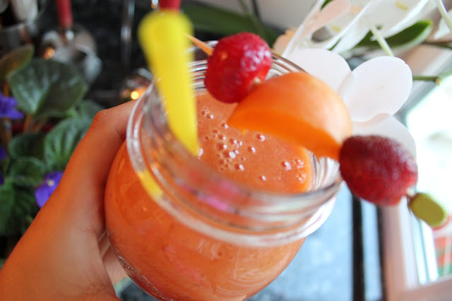 Bu defa küçük bir tarif paylaşıcam sizinle. Süper kolay ve süper lezzetli bir smoothie. Henüz vaktimiz varken yaz meyvelerini kaçırmayalım. Ben bu defa çilek, şeftali ve kayısı kullandım. Ancak karpuz ve kavunu da esgeçmeyin derim.